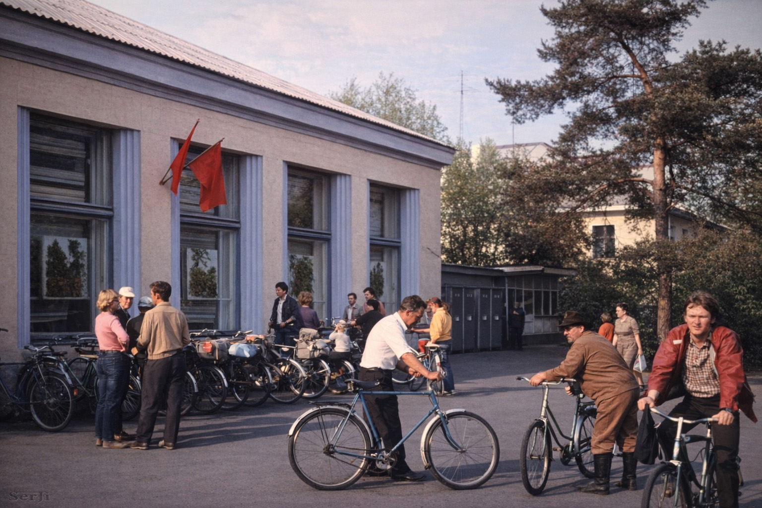 Магазин Россиянин Велосипедная стоянка возле магазина "Россиянин" на горке ранее "Первый" 1984 г. Фотография восстановлена AI Автор оригинала: Алексей Крючков